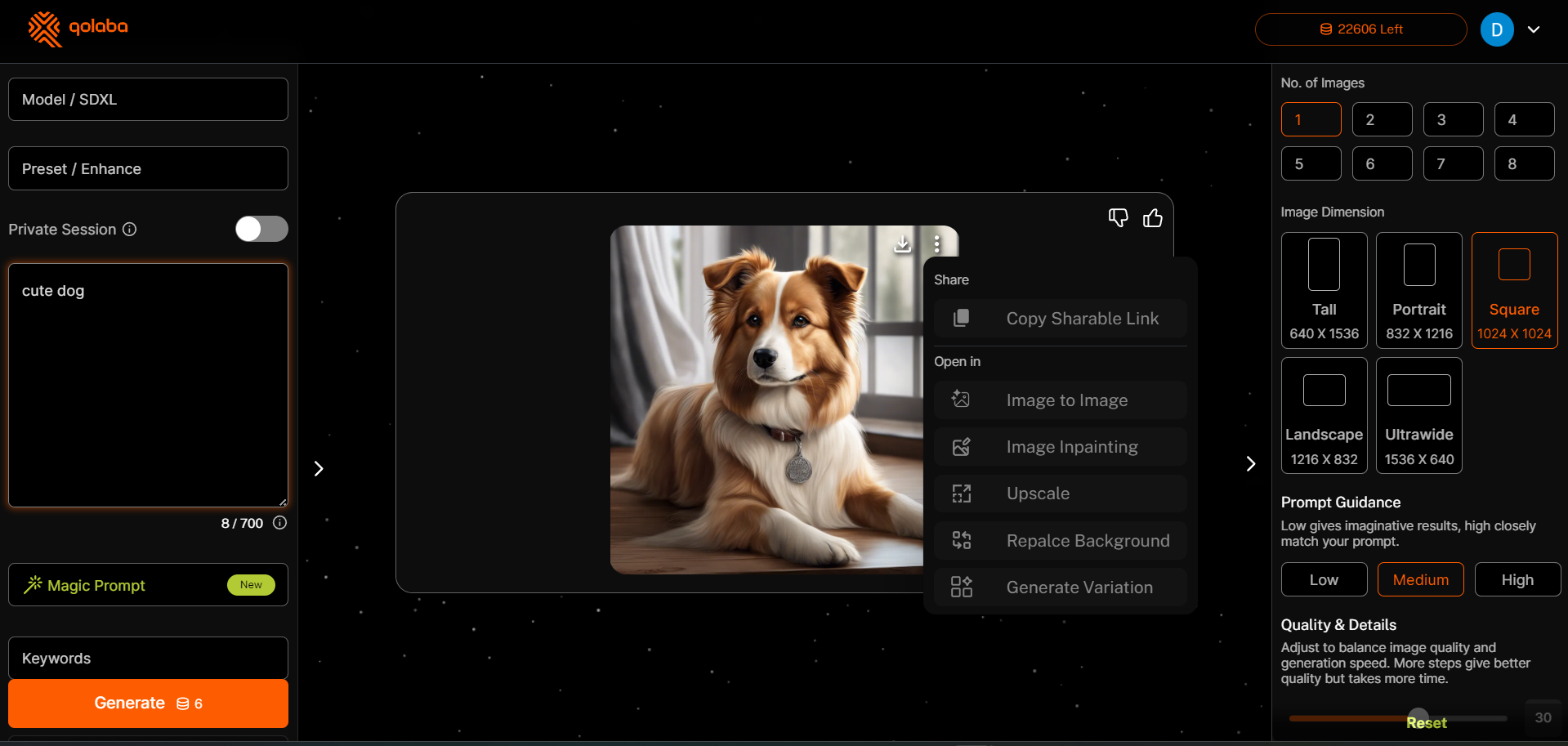 After generating an image on the Qolaba platform, you can further refine and customize it using the available options.