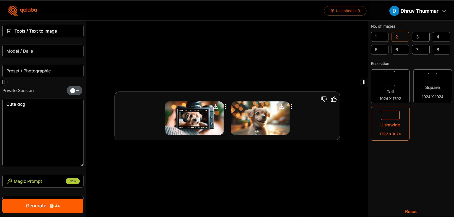 On the right-hand panel, you can choose the number of images you want to generate based on your prompt. Below this, you'll find options to select the desired aspect ratio, such as ultrawide, portrait, or square.